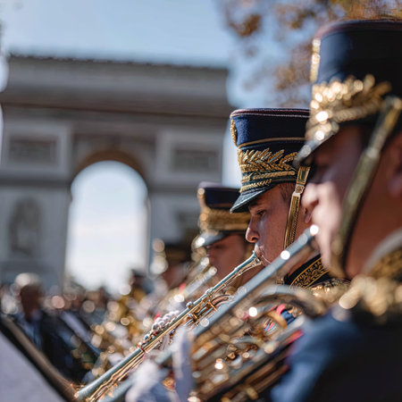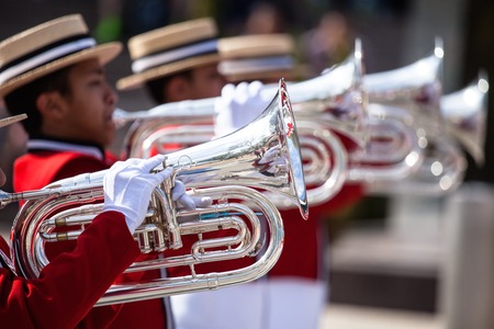 A musician of Royal Band performing his instrument during a parade in the commemoration of Veteran's day