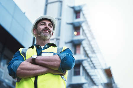Youll always get a solid foundation with him. Shot of a engineer standing in front of a building.