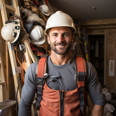 A man wearing a hard hat working on a construction project. This image can be used to represent construction, building, or renovation projects.