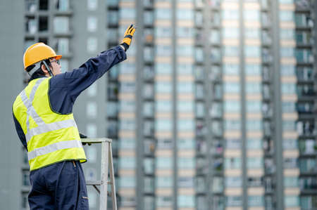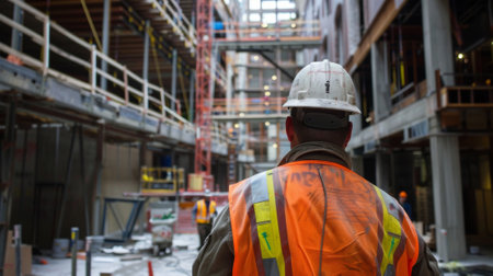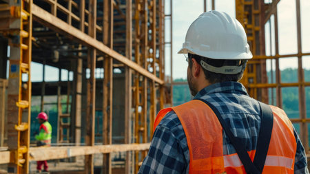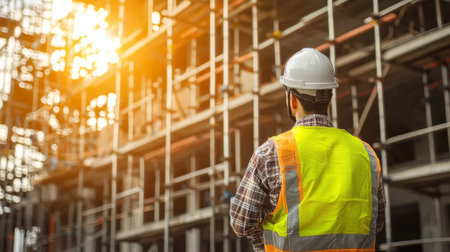 Back view of construction engineer in standard safety