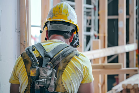 construction site worker at work roof beams