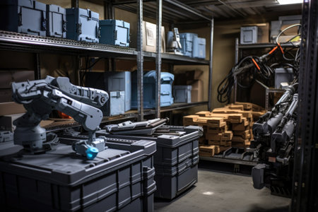 3d printer creating spare parts for warehouse robots, created with generative ai