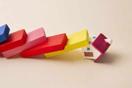 Houses made with wooden blocks in a row, domino effect