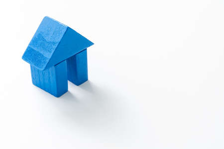 Blue house wood block on white background for real estate property industry