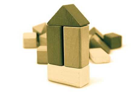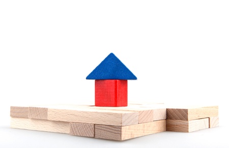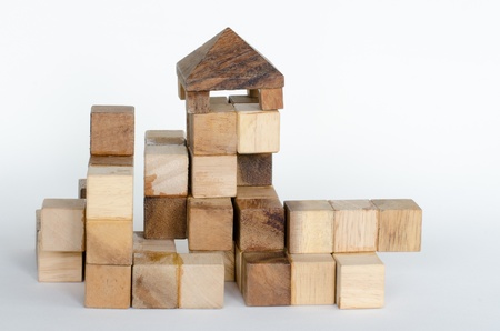 House of wooden blocks on a white background