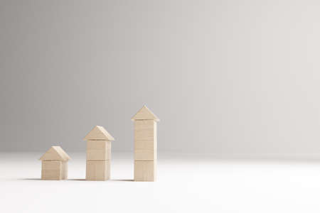Real estate investment concept with wooden cubes , house selection concept, 3D rendering