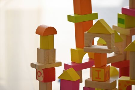 colorful wooden block geometric toy for kid playing learn creativity in stay home