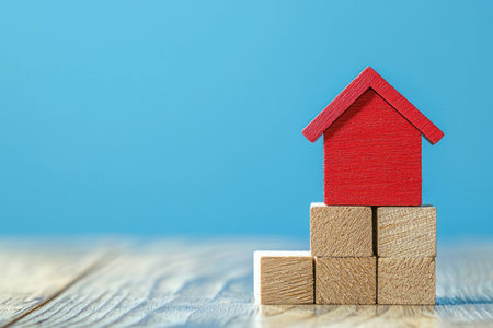 Toy house made of wood placed on many wood blocks with copy space