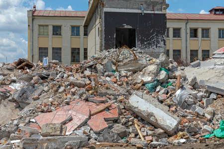 Demolition of an old building. Fragments of brick. industrial background