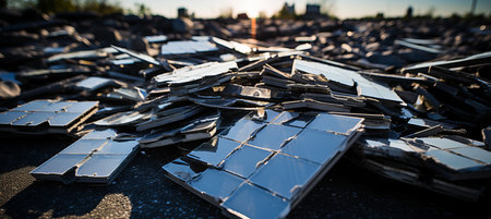 End of life renewable energy facility, broken solar panels, hard to recycle hardware