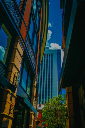 Big buildings in the city on a clear sunny day, career growth.