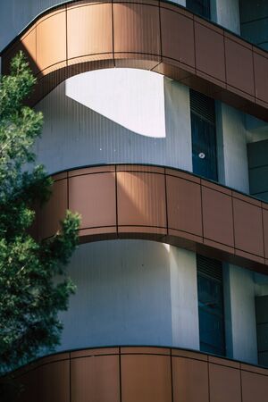 Facade with Windows in Modern residential apartment and flat building exterior. Detail of New luxury house and home complex. Part of City Real estate property and condo architecture. Balconies