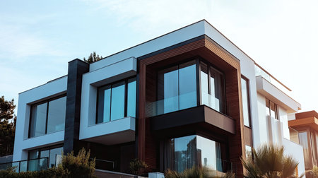 Newly built condominiums. Stylish exterior apartment photographed in a minimalist style.