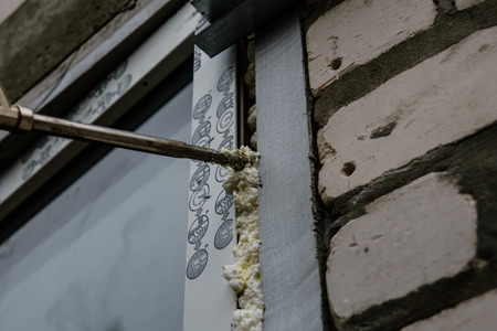 Installation of modern window made of PVC profiles