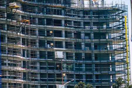 Limassol Cyprus March 16, 2020 View of unidentified people working to a new building in construction in the city of Limassol