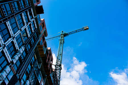 Building construction site at sunny day, blue cloudy sky