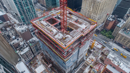 Bird's Eye View of a Bustling Construction Site in the Heart of the, Bird's eye view of a bustling construction site Ai generated