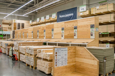 MOSCOW, RUSSIA - FEBRUARY 15, 201: Interior of the Leroy Merlin Store. Leroy Merlin is a French home-improvement and gardening retailer serving thirteen countries