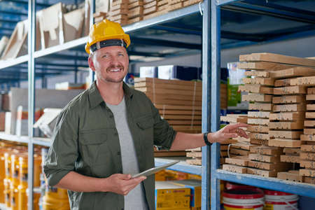 manager in a hardware store inspects retail space