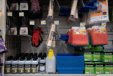 Ryazan, Russia - October 01, 2019: Wallpaper mount equipment in a market.