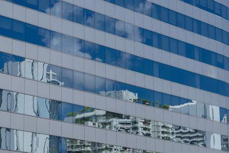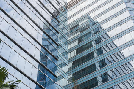 Office glass windows with beautiful reflection in Hong Kong, Asia.