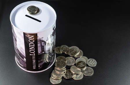 Thai baht coin fill in full in glass for investment in future.