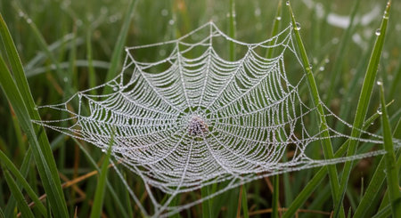 Silken Intricacies: Spider Weaving Nature's Web in the Meadow in Northern Europe
