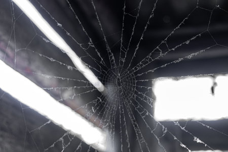cobweb in the light of a lantern in a dark, scary, damp room not far from the exit to the street, a spider hid to attack its victim, horror