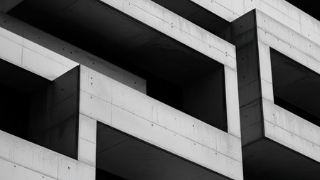 This image showcases a modern building with a striking concrete facade, emphasizing minimalist design elements and sharp lines that evoke contemporary urban architecture.