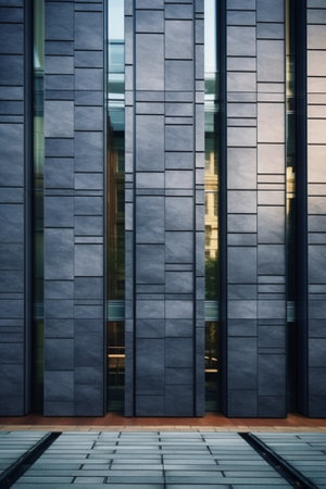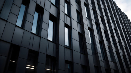 Sleek black steel tiles on a modern architectural structure, reflecting urban sophistication