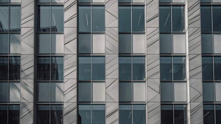 An Ai generated illustration of a modern building with a glass facade and multiple windows reflecting the surrounding cityscape