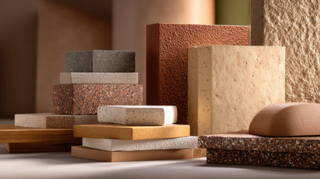This image features a diverse assortment of textured materials presented in a harmonious arrangement, ideal for architecture and interior design inspiration.