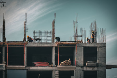 Istanbul,Turkey - 04-02-2013:Construction workers in Istanbul work safely in a multi-storey building