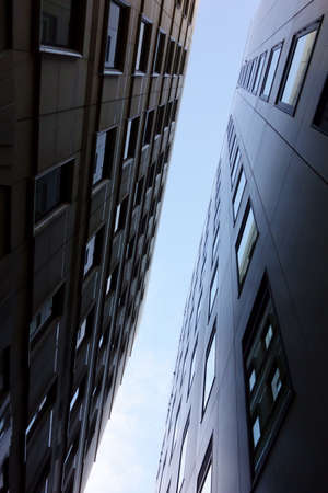 Facades of dynamic office buildings in the center of Frankfurt, Germany