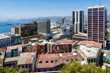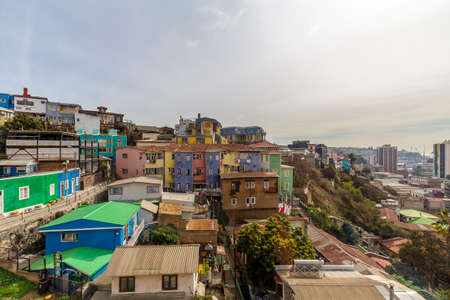 Colorful buildings on the hills of the UNESCO World Heritage city of Valparaiso, Chile