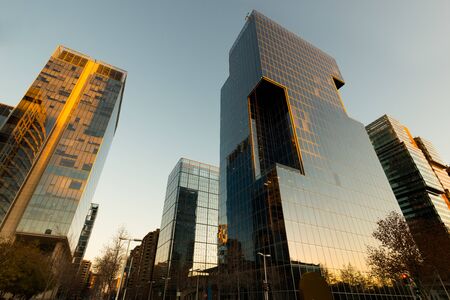 Autumn light reflected in the buildings at sunset. Madrid, Spain.