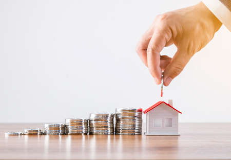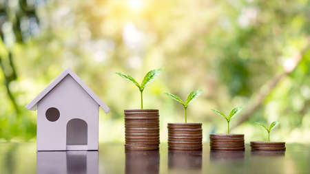 Property investment and house mortgage financial conceptmoney coin stack ,business home idea