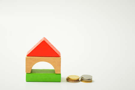 stack coins and house wood model ,concept idea for save and purchase house,growth business