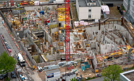 VIENNA, AUSTRIA - DECEMBER, 24 Basement and cranes at big construction site. The Icon luxury buildings