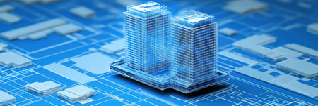 Digital Blueprint: Modern Cityscape Design on Engineering Grid System Architecture