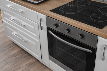 Electric stove for cooking in the kitchen, close-up. Modern kitchen detail.