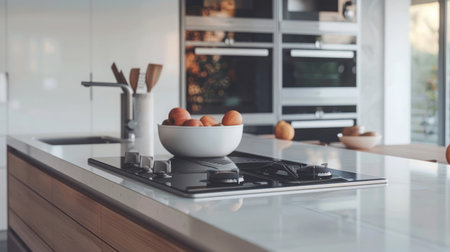 Modern kitchen interior design with granite countertop Digital composite on induction hob in modern kitchen