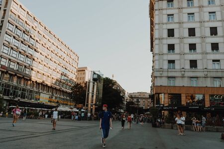 BELGRADE, SERBIA - JULY 11, 2017: People walking at the most famous shopping street and one of the favourite destinations of tourists, Knez Mihajlova. Belgrade, Serbia.