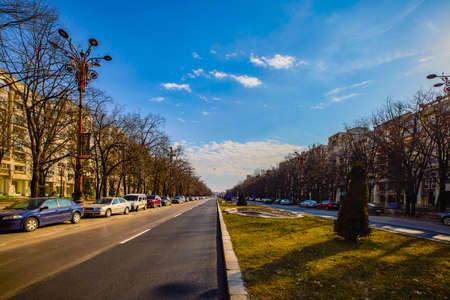 Bucharest, Romania - February 7, 2016: Bucharest panoramic view over Magheru Boulevard, in city center