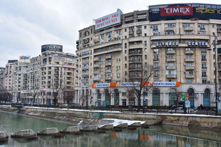 The Dambovita river at the Splendor of Independence Street (Romanian: Splaiul independentntei) in Bucharest. The river as it passes by the Bucharest Court of Appeal.