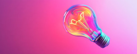 A lightbulb made of abstract, glowing shapes and swirling neon colors, floating against a smooth gradient background, symbolizing innovation.