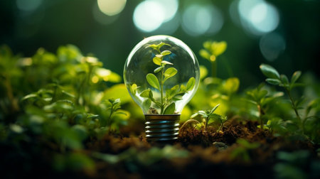 Bulb with a small tree inside. Concept of sustainability and environment. Generative AI