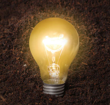 Innovations in green energy: an eco friendly light bulb in the forest.