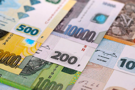 Congolese franc money bills in big amount on table close up. Rich life concept in Democratic Republic of Congo. Business and economy