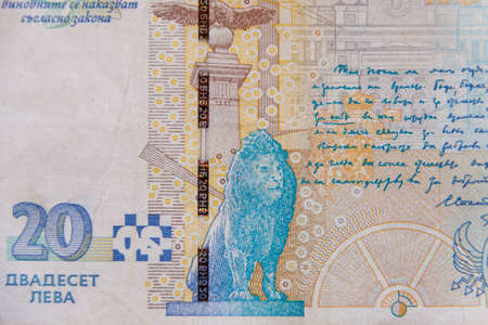 Macro shot of the bulgarian twenty levs banknote